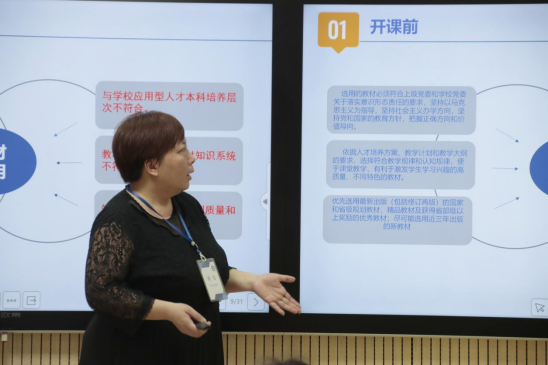 培训会上,黄芳老师主要从“一门课”和“一次课”两个不同角度介绍了教学基本流程和规范要求,并重点对试卷命题、毕业设计工作流程和课堂组织管理等板块进行讲解,与会老师们围绕授课内容进行了热烈的讨论和分享。