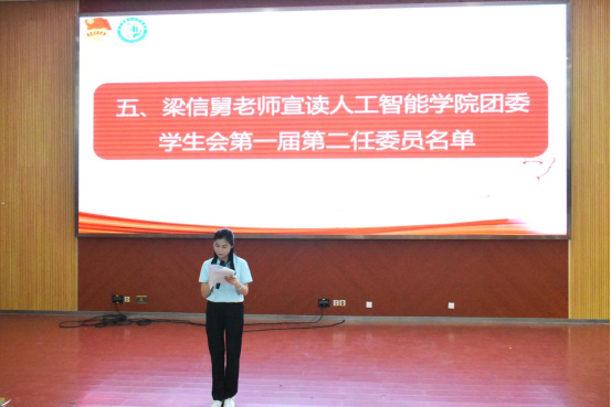 团委书记梁信舅宣读学院团委、学生会第一届第二任学生干部