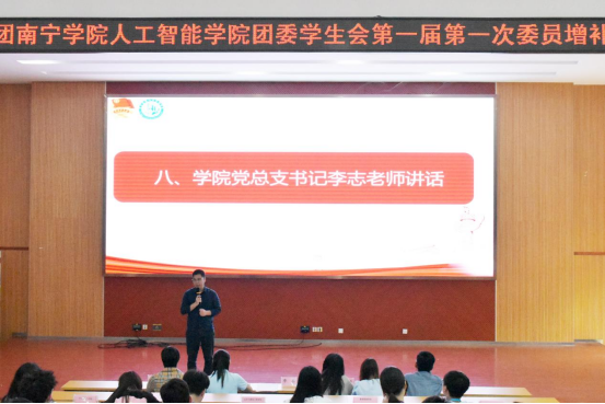 4月15日中午,学院在活动中心103召开共青团南宁学院人工智能学院委员会、学生会第一届第一次委员增补大会。学院党总支书记李志、团委书记梁信舅、专职组织员韦双妮、辅导员杨婧、陈家兴、洪豆出席会议,学院各学生组织代表、基层班级代表参加会议。本次会议由陈文烨同学主持。