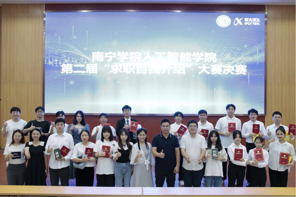 5月5日晚,人工智能学院在活动中心103顺利举行第二届“求职自我介绍”大赛决赛。学院党总支书记李志、科大讯飞驻南宁学院项目经理杨将天、学生科科长梁信舅、辅导员杨婧、就业指导老师蒋雯雯、谭玮晶出席本次比赛,2020级各基层班级学生到场观摩比赛。