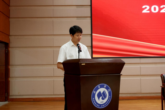 颁奖仪式后,毕业生代表、2019级数据数据科学与大数据技术专业谢怡雯同学代表毕业生发言。她回顾了大学四年的点滴历程,感谢学校和学院的关心与培养,代表毕业生表达了毕业后将不负韶华争朝夕,前程似锦追明路,在祖国需要的地方建功立业,在各行各业发光发亮。教师代表、智能科学与技术教研室主任唐诗副教授代表教师上台发言,他回顾了毕业生们四年学习编程、熬夜敲代码的点点滴滴,激励同学们更加自信,走好未来每一步,不要害怕失败,必将在人工智能的领域里,创造不同凡响的事物,做出属于自己的伟大贡献!