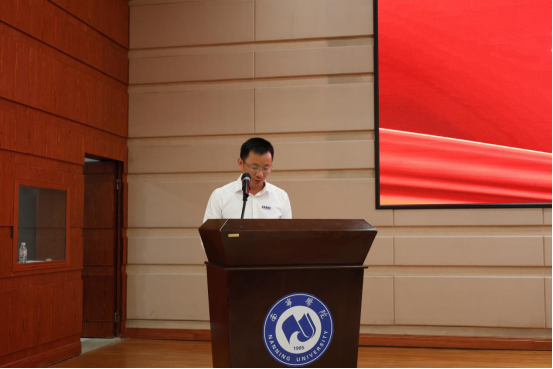 院长王宁章教授在典礼上讲话。王宁章院长充分肯定了2023届毕业生在校期间取得的骄人成绩,感谢他们为学校和学院的建设发展所做出的积极贡献,也表达了学院对他们的不舍之情。王院长以自身39载教育工作历程,勉励毕业生们在毕业后要坚定理想信念,保持学习习惯,在漫漫征途中披荆斩棘,乘风破浪,一往无前,并祝愿毕业生们每一个人都能遇见更美好的生活和更美好的世界!