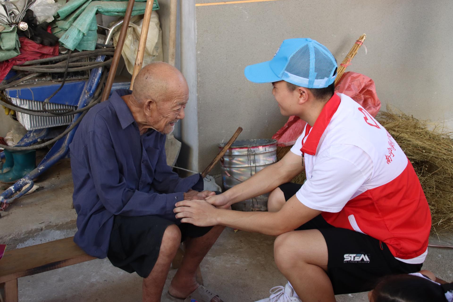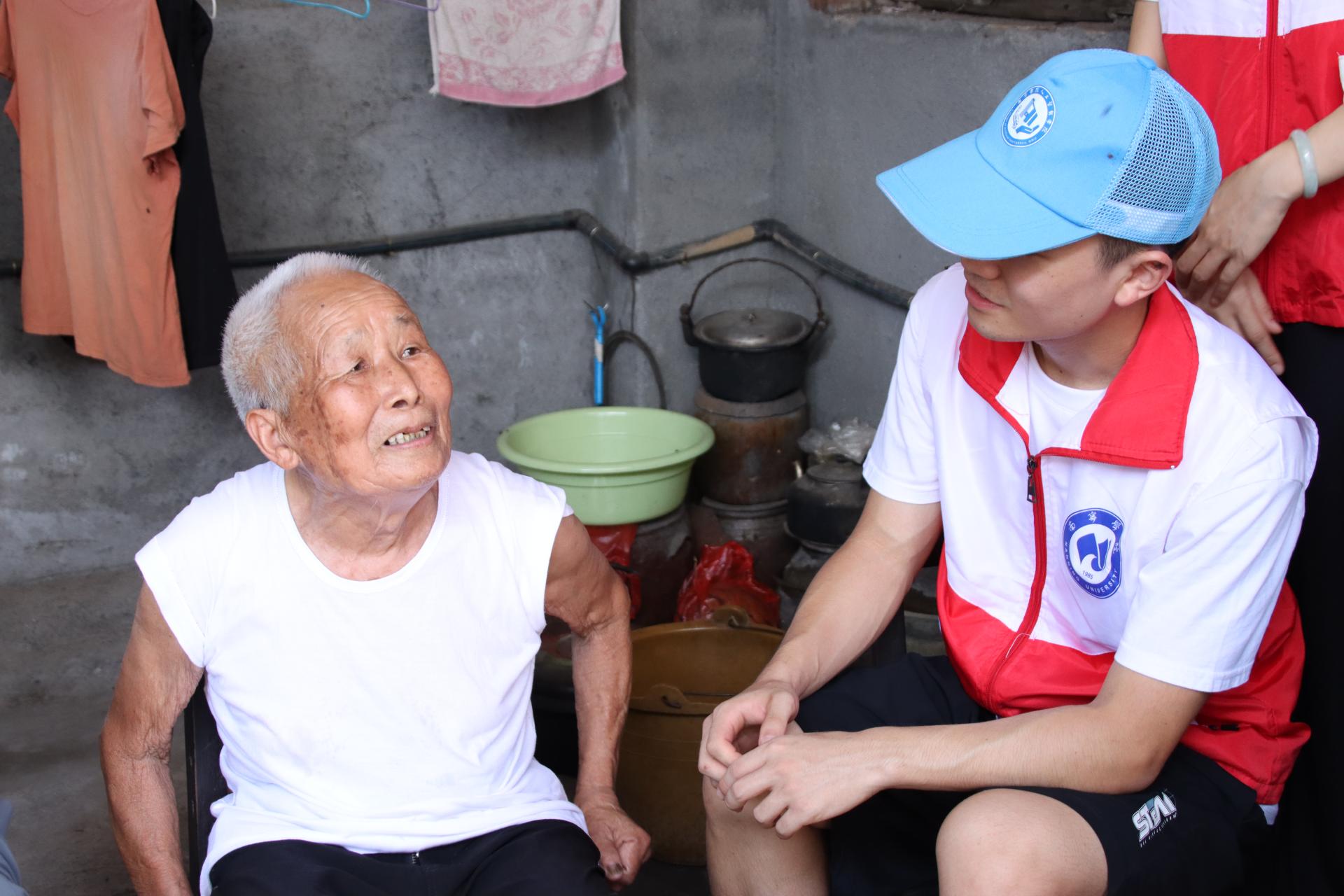 雷德辉同志,97岁,参加了抗美援朝战争,是服务团走访的其中一位抗战老兵。雷爷爷给同学们讲述了他的抗战故事,回想起往事,老人眼眶泛红,心情沉痛,在朝鲜战场上抗击美军的战争场面也好似浮现在眼前,同学们听后心情也十分沉重。
