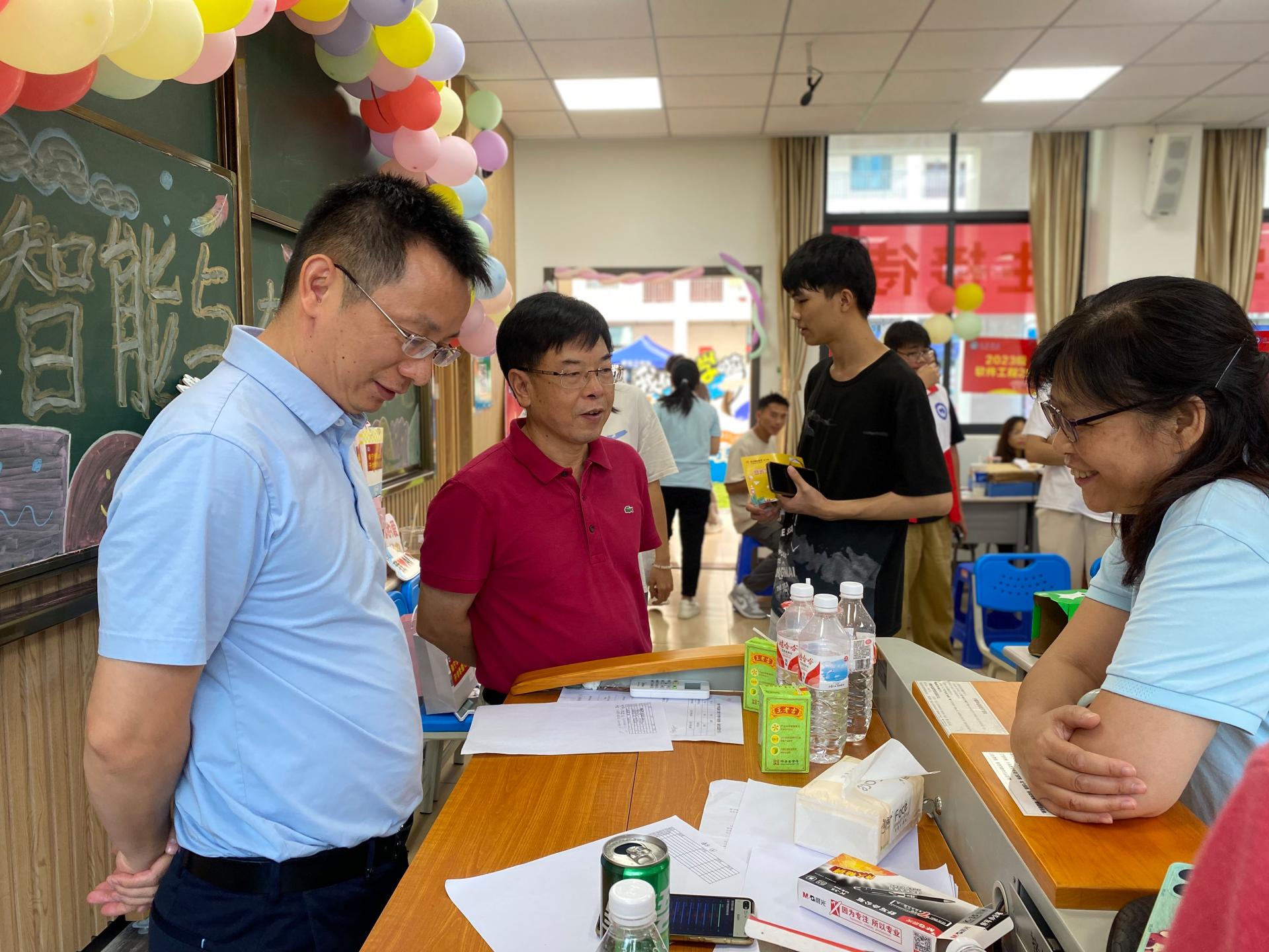 学校、学院领导老师到学院迎新现场指导工作,与新生进行亲切的交流,向他们表示热烈的欢迎,并送上爱心大礼包与新生亲切合影。希望大一新生能够在这里度过充实而快乐的四年,并鼓励同学们努力学习,成为对社会有用的人才。