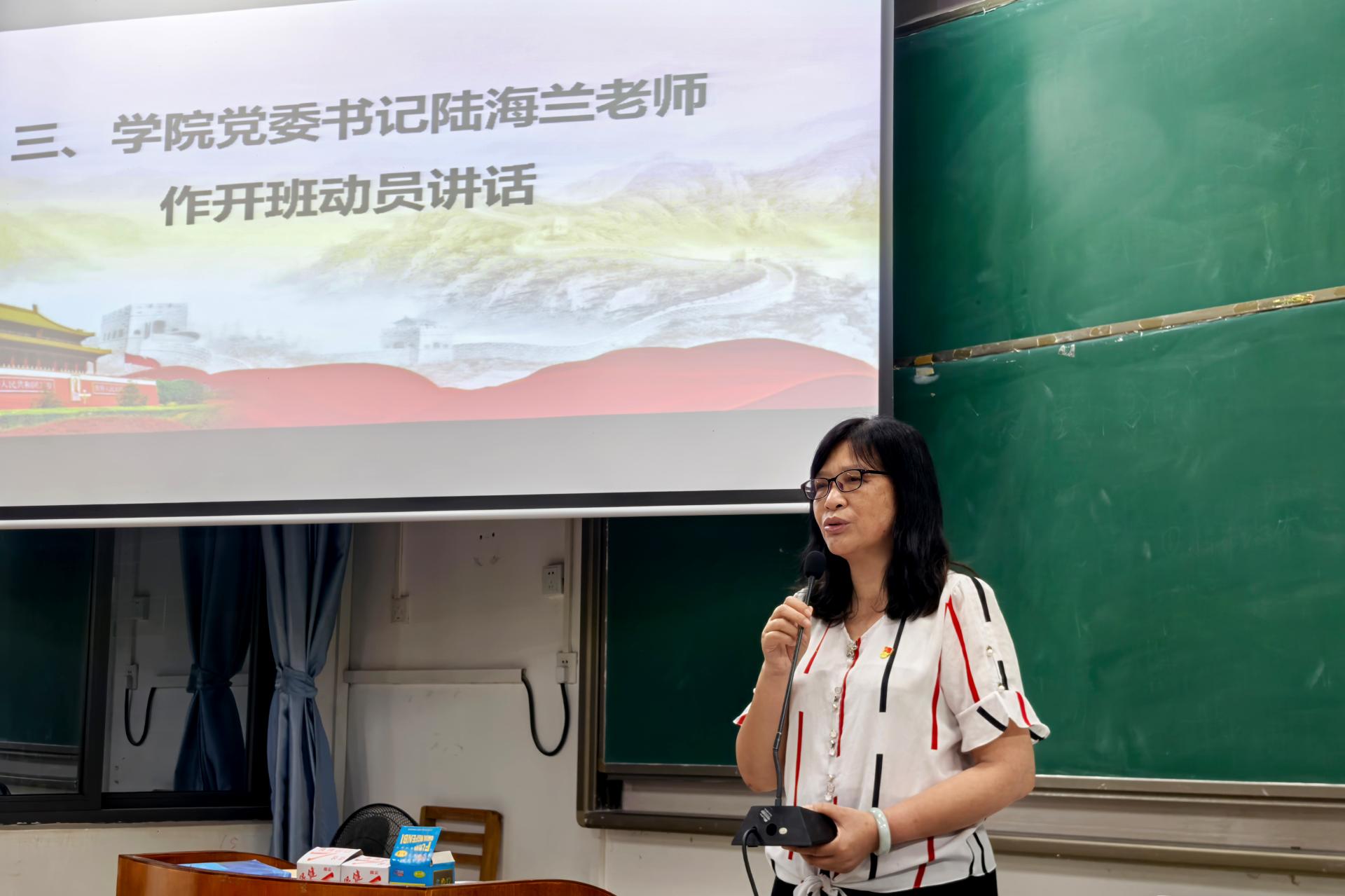 在开班仪式上,学院党委书记陆海兰发表动员讲话。陆书记向每一位在座的同学表示热烈的欢迎和衷心的祝贺,这是你们人生道路上的重要里程碑,也是你们实现自我价值、服务人民的崭新起点。同时,向在场的同学们提出三点希望:一是要认真学习,提高政治素养;二是要坚定信仰,牢记使命担当;三是要严于律己,遵守党的纪律。最后,陆书记希望大家能够珍惜这次学习机会,认真学习、深入思考、积极实践,努力成为一名合格的共产党员,为学院党的建设和发展注入新的活力和动力。