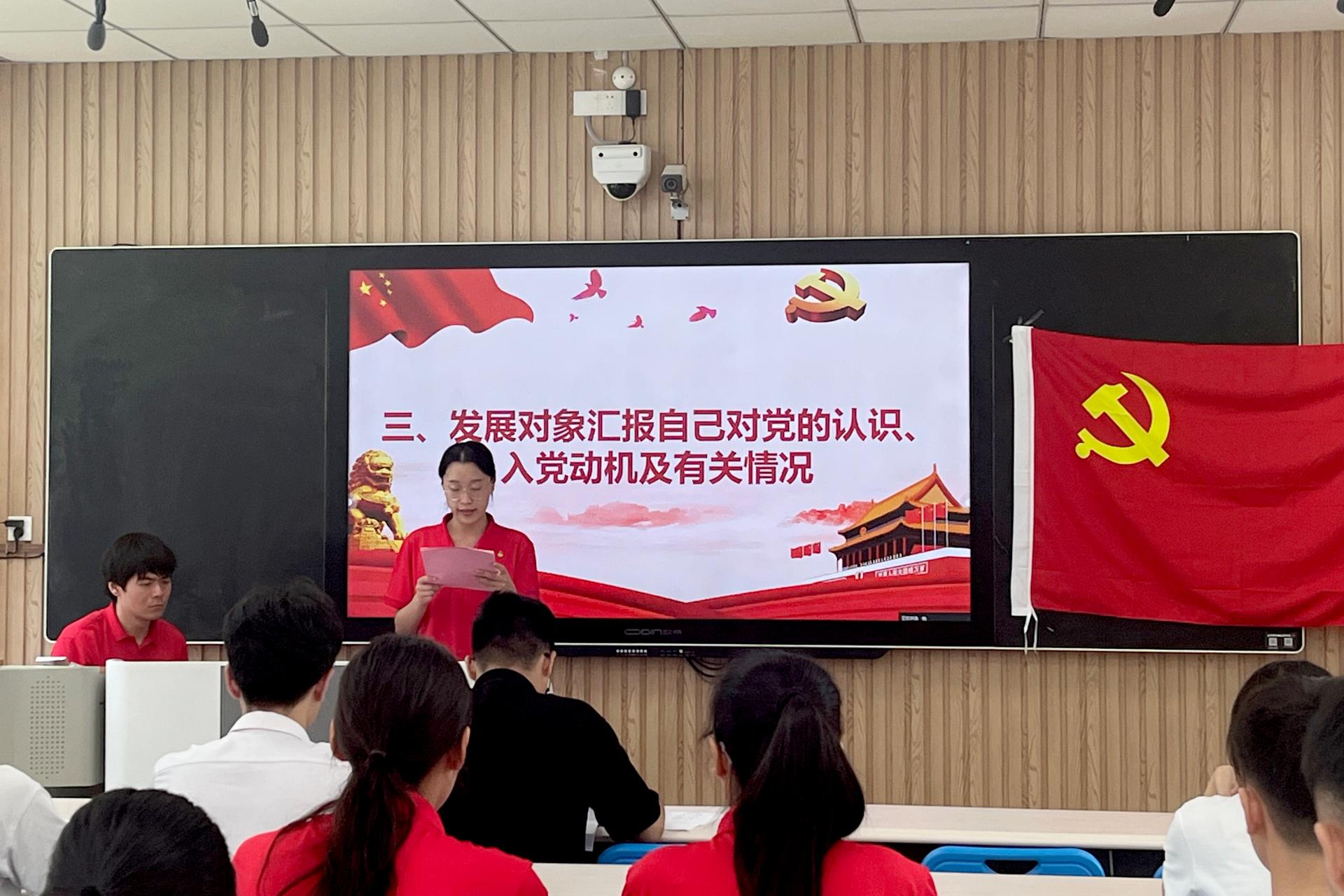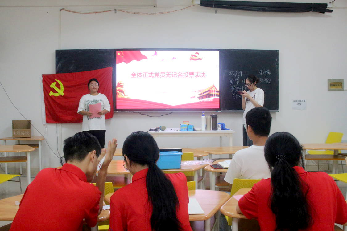 会上,全体参会人员起立奏唱中华人民共和国国歌。随后,吕孙剑等26名发展对象依次宣读入党志愿书,汇报自己对党的认识、入党动机等情况,入党介绍人、与会党员对发展对象的表现发表意见,发展对象听取意见并作表态。经参会正式党员的无记名投票方式表决并宣布结果,票数统计超过参会党员的三分之二,本次表决有效,同意吕孙剑等26名发展对象吸收为中国共产党预备党员。