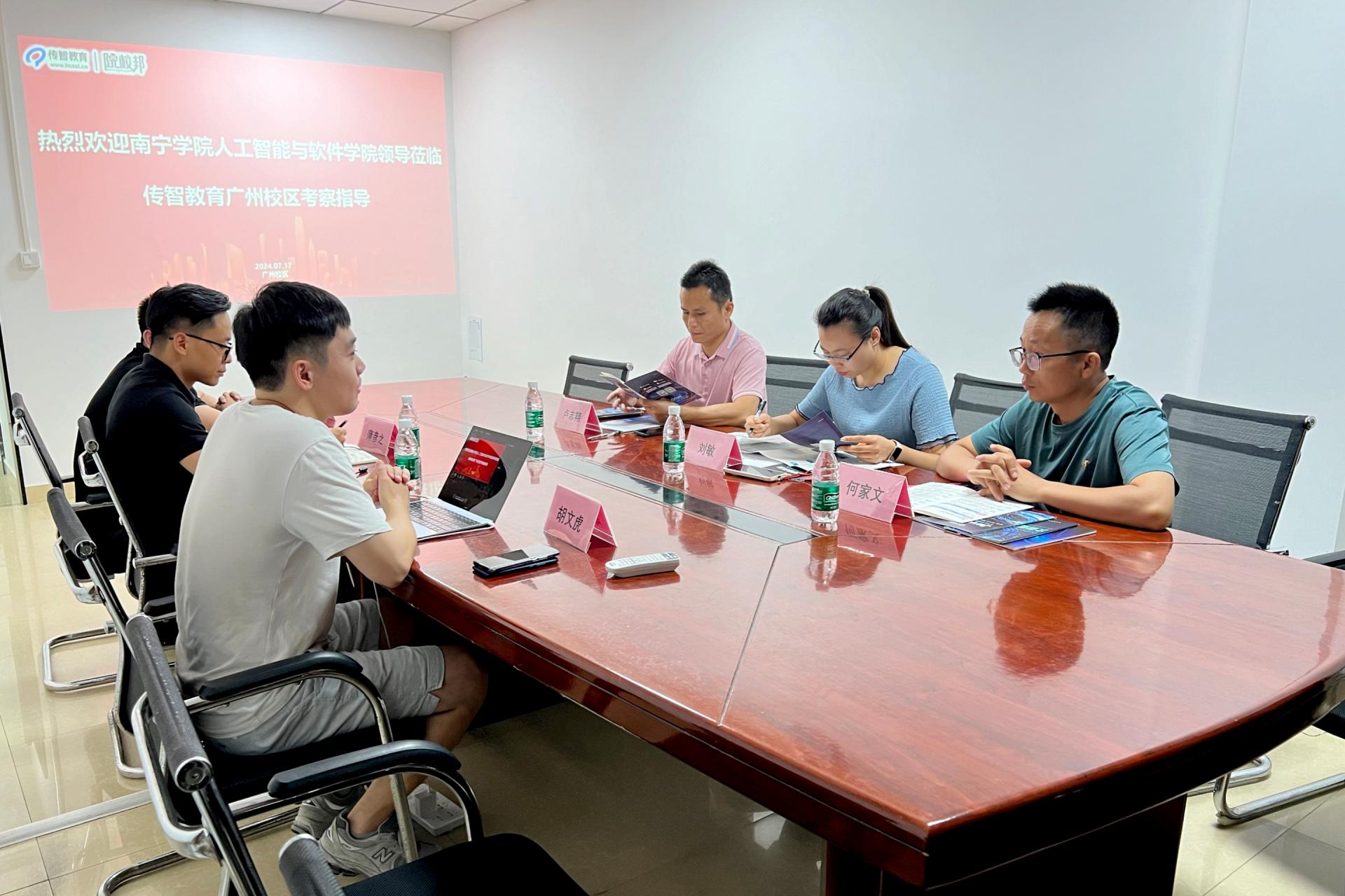 7月18日上午,团队前往广州传智教育,这是一家以就业为导向的职业教育集团。其主要致力于培养人工智能、鸿蒙应用开发、Python+大数据开发、集成电路应用开发、智能制造、软件、互联网等数字化专业人才,以及数据分析、新媒体、短视频直播运营、AI+设计等数字化应用人才。该集团的培养方向与我院的五个专业高度契合。五个专业分别与传智教育的教研组老师展开了深入交流,针对当前行业所需的人才以及当下热门的技术,对课程设置进行了深入探讨。