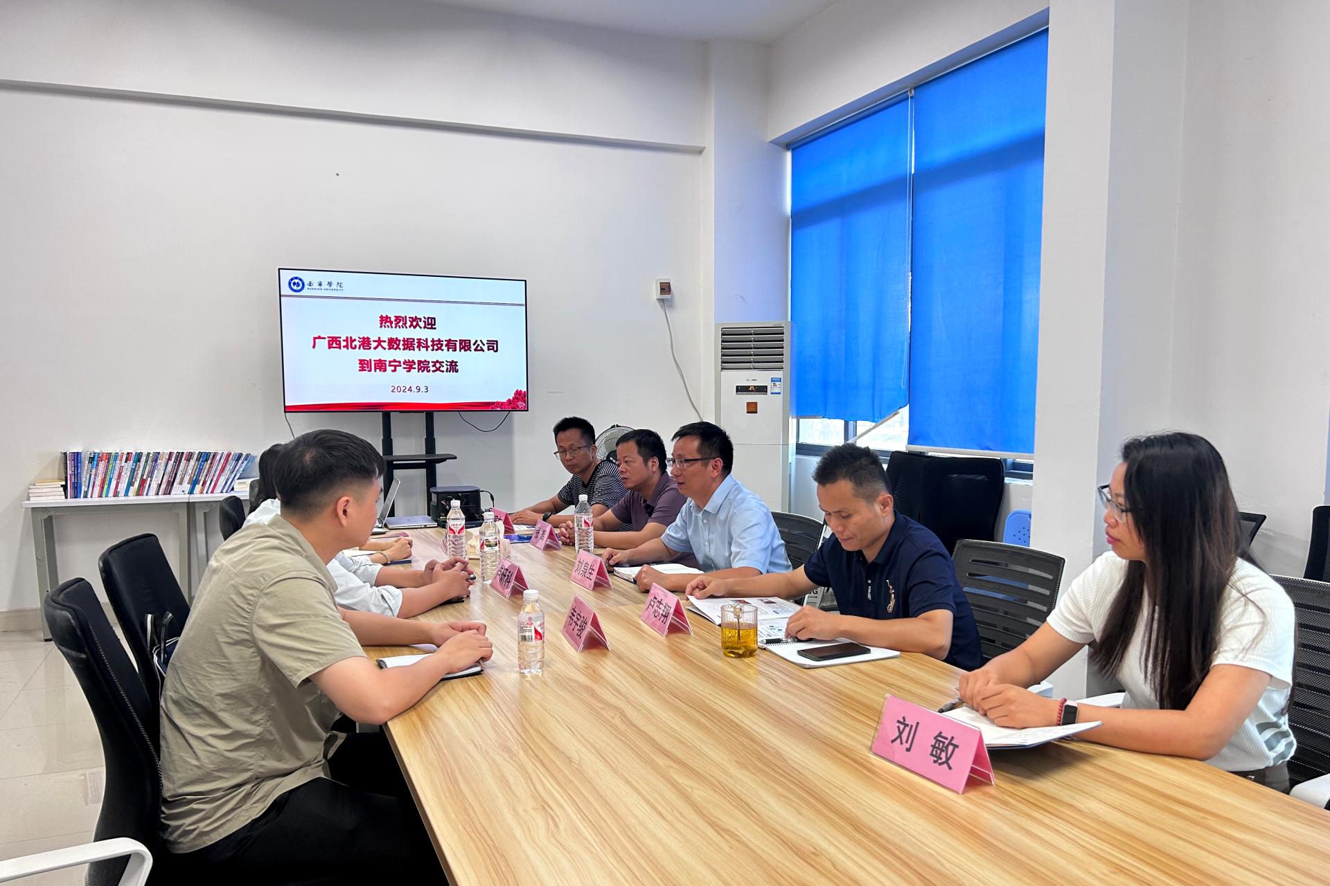 9月3日上午,广西北港大数据科技有限公司市场部副总经理卢研科等一行三人到我院交流,学院副院长刘泉生、卢志翔热情接待。校企双方在智能楼211举行座谈交流,学院副院长刘泉生、卢志翔、相关专业教研室主任、负责人出席座谈会。座谈会由刘泉生副院长主持。