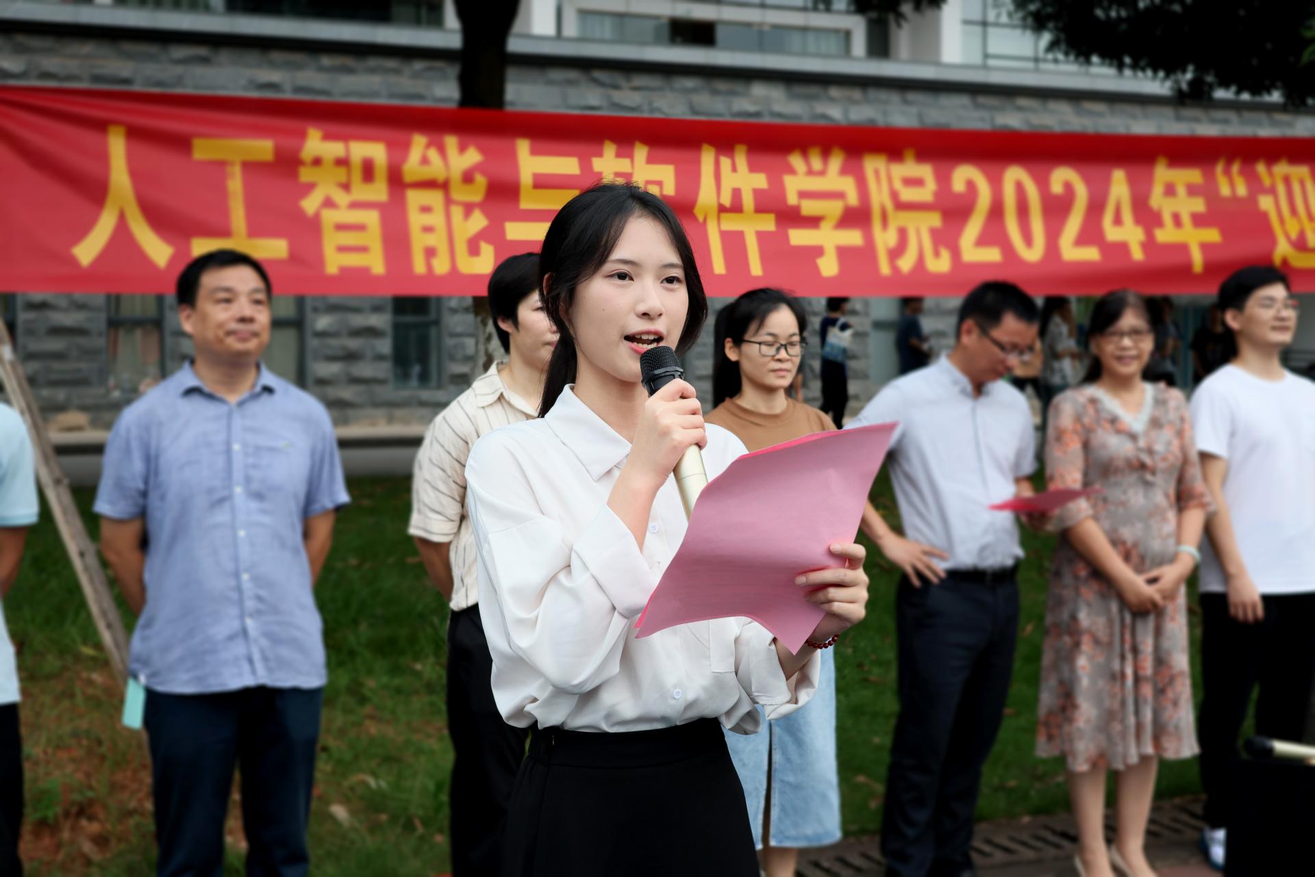 为丰富校园文化,展现新生风采,促进各基层班级的交流,9月19日下午,人工智能与软件学院2024年“迎新杯”篮球赛在篮球场顺利开幕。学院党委书记陆海兰,副院长刘泉生,学生科科长、团委书记梁信舅,专职组织员韦双妮以及全体新生班辅导员出席开幕式,学院学生干部、裁判员以及2024级全体新生参加开幕式。本次开幕式由曾欣梦同学主持。
