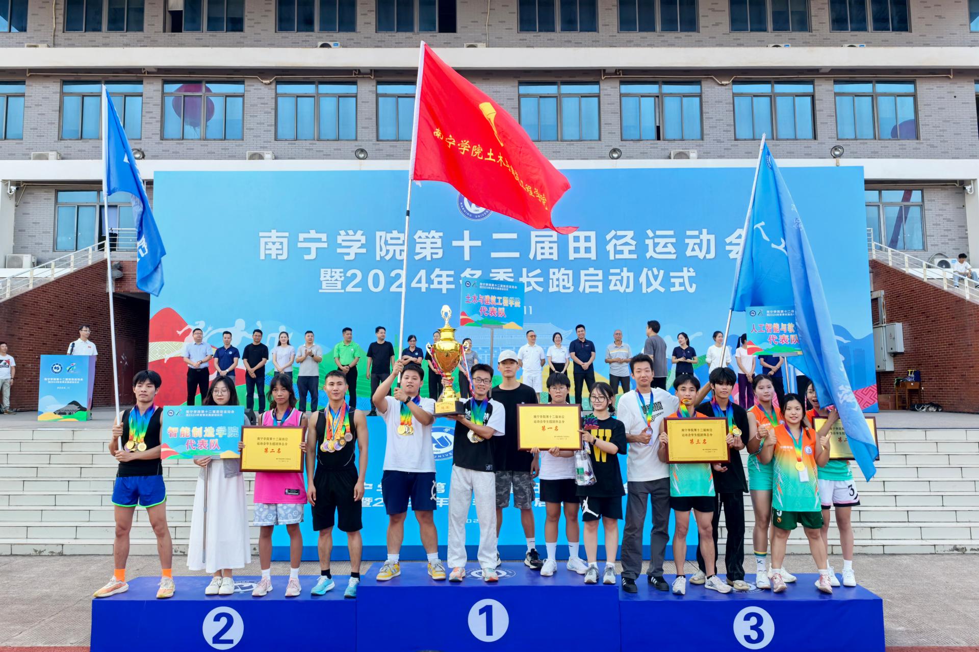 11月16日下午,2024年南宁学院第十二届田径运动会经过两天紧张、激烈的比拼圆满落下帷幕。我院师生运动员齐心协力、团结一心,荣获学生组女子团体总分第二名、学生组男子团体总分第三名以及学生组团体总分第三名等多个团体和个人奖项。