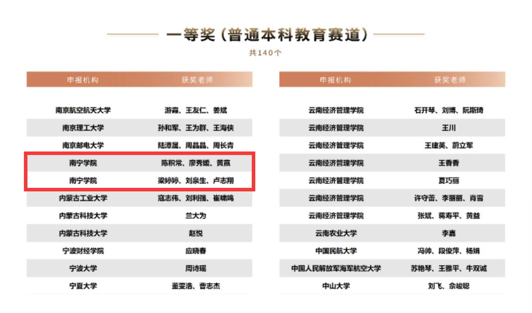 南宁学院在本次大赛中表现出色,共有2个团队荣获一等奖,4个团队荣获二等奖,同时学校还荣获了“最佳组织奖”的称号。这一成绩的取得,是南宁学院长期以来坚持立德树人根本任务,深入贯彻落实党的教育方针和习近平总书记关于教育的重要论述,积极推进课程思政建设的结果。