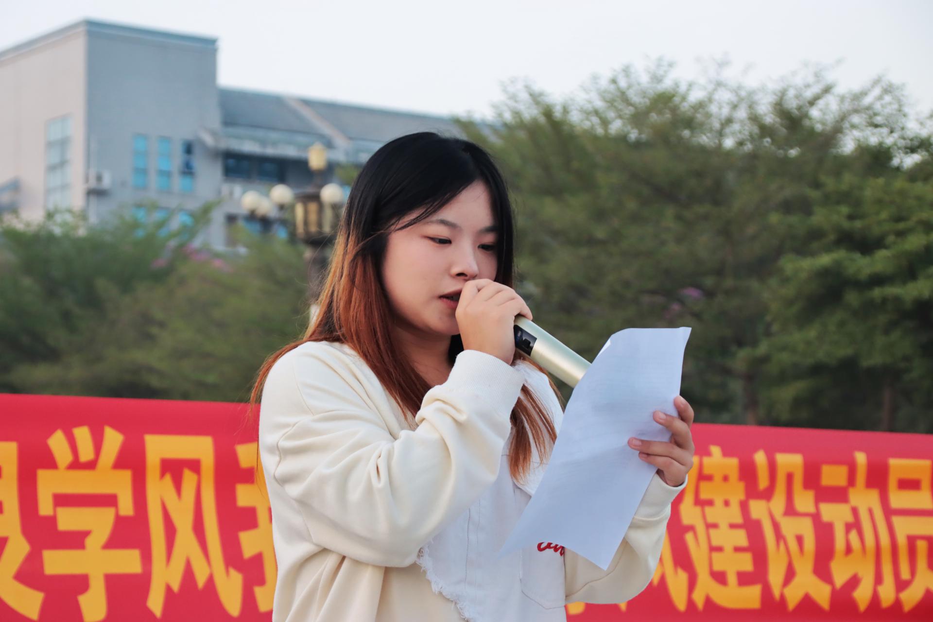 最后,学院党委书记陆海兰进行动员讲话。陆海兰书记强调校风是学校发展的基石,可以塑造师生的精神品质,广大师生要深刻认识校风建设的重要意义,着力解决校风建设中纪律意识淡薄、学习氛围不浓、师生关系优化等问题。陆海兰书记针对学院师生齐心协力,共创优良校风提出几点建议:一是领导班子要发挥引领作用;二是教师要成为校风建设的主力军;三是广大同学要积极参与,从我做起。校风建设是一个长期而艰巨的任务,它需要我们每一个人持续不断地努力。