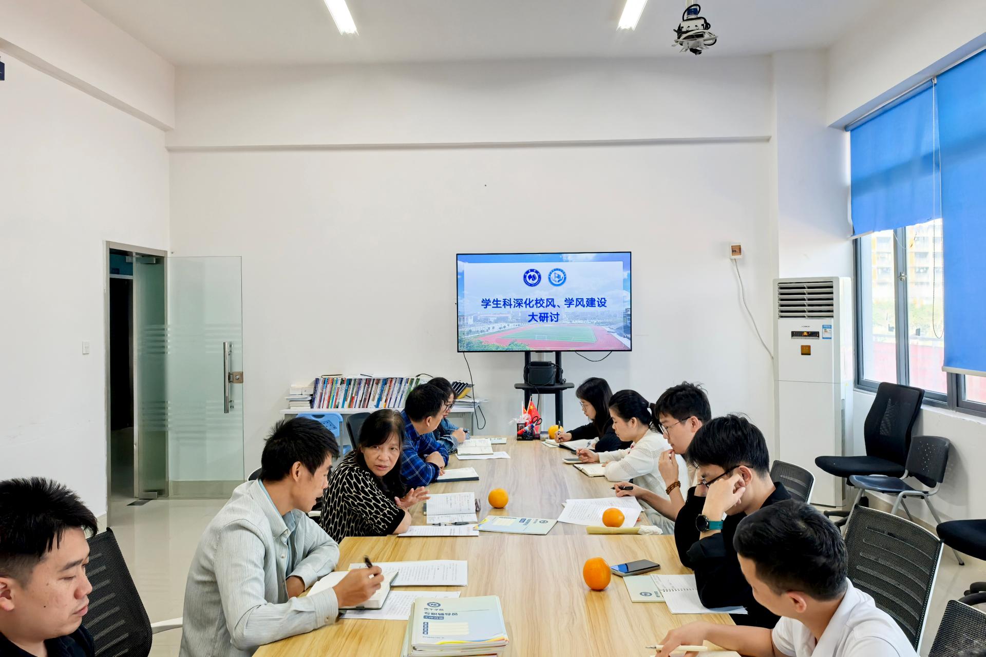 为积极响应学校关于加强校风建设的号召,深刻学习领悟学院院风建设方案,打造一个积极向上、富有活力、充满创新精神和人文关怀的学院环境,11月7日下午,人工智能与软件学院学生科在智能楼211会议室召开学风建设大讨论。学院党委书记陆海兰、学生科科长梁信舅、专职组织员韦双妮以及全体专兼职辅导员(班主任)参加会议,陆海兰书记主持本次大讨论。