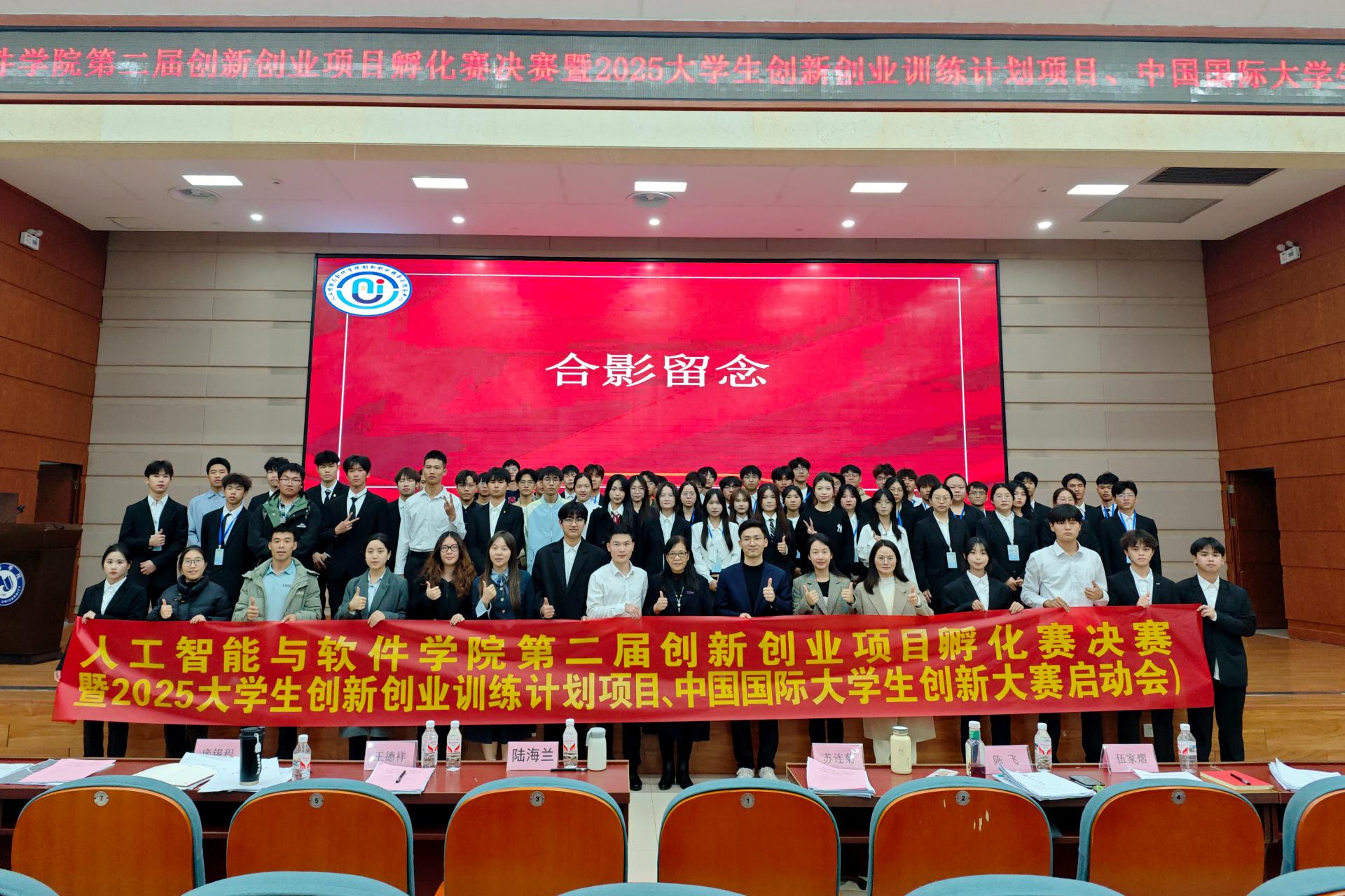 12月10日晚,人工智能与软件学院第二届创新创业项目孵化赛决赛暨2025大学生创新创业训练计划项目、中国国际大学生创新大赛启动会在图书馆报告厅顺利进行。人工智能与软件学院党委书记陆海兰、华为企业驻校教师王德祥、软件工程教研室专任教师陈飞、数学教研室专任教师苏连菊、人工智能与软件学院中国国际大学生创新大赛国赛银奖获得者庞锡程同学、智能制造学院中国国际大学生创新大赛国赛银奖获得者伍家熠同学受邀出席活动并担任比赛评委。本次比赛由谢鑫同学主持。