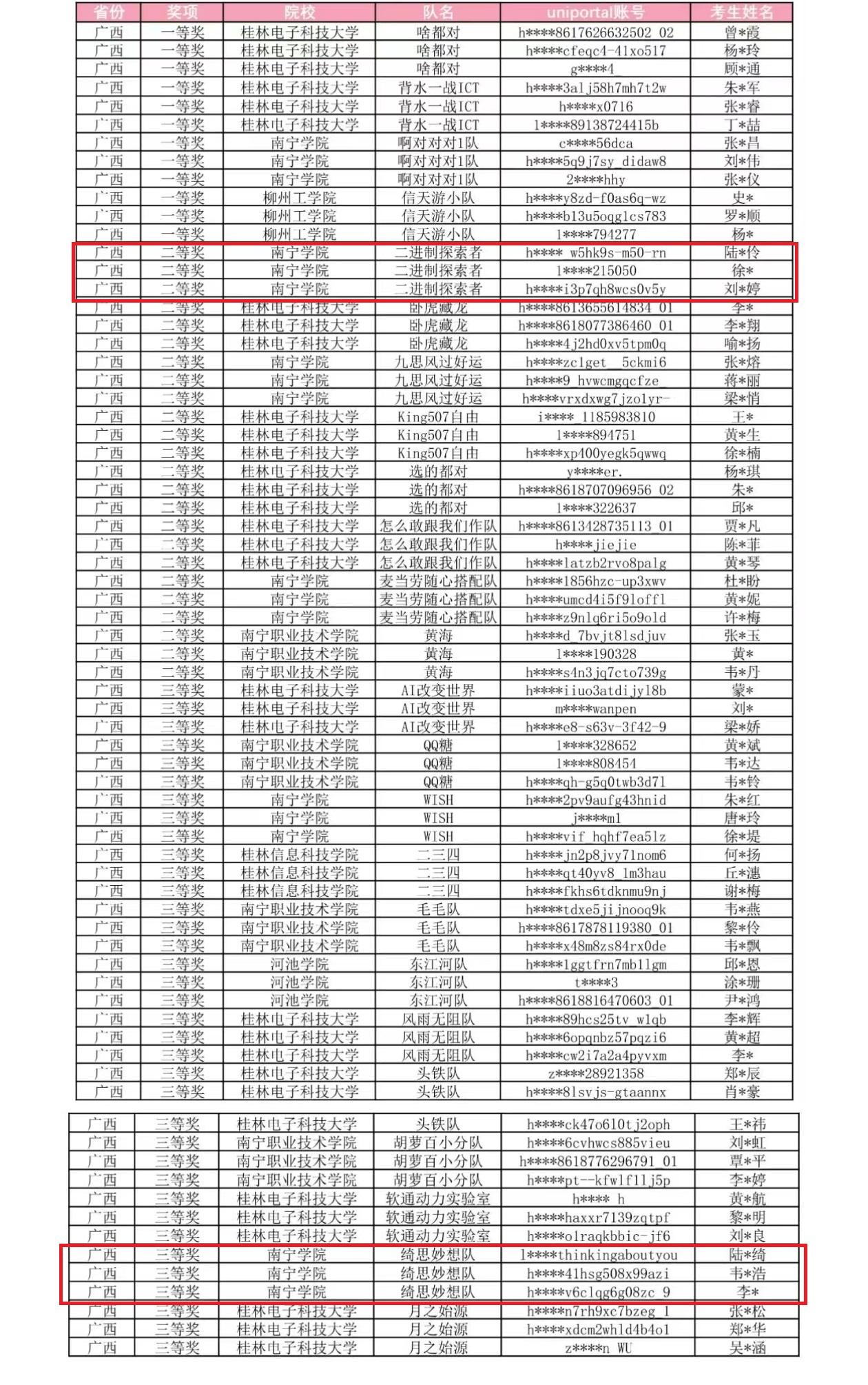 1月22日,第九届华为ICT大赛编程赛广西壮族自治区赛获奖名单正式公示,人工智能与软件学院的两支参赛队伍脱颖而出,取得优异成绩。其中,我院22级软件工程2班陆冠伶、徐颖和刘宇婷同学组成的“二进制探索者”队荣获二等奖,23级智能科学与技术1班陆梁绮、韦崇浩和智能智造学院李夏同学组成的“绮思妙想队”荣获三等奖。
