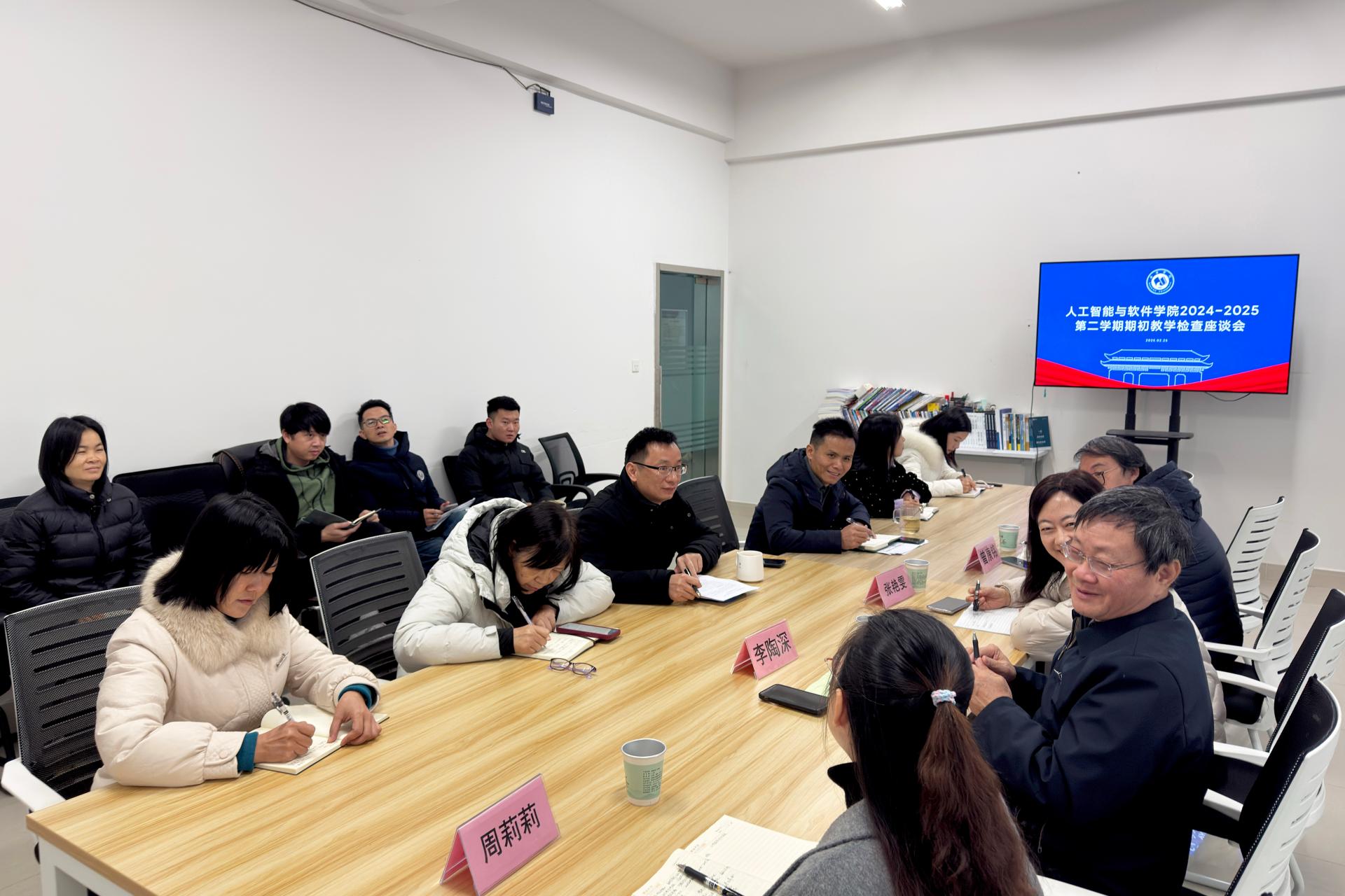 本次检查工作全面梳理了人工智能与软件学院2025年春季学期期初教学工作的各项情况,明确了学院在教学、科研、师资队伍建设、学院管理和学生工作等方面的任务与目标。参会人员积极讨论,提出了一系列具有针对性的意见和建议,为学院后续工作的开展提供了重要指导,对学院整体发展和教学质量提升起到重要推动作用。(人工智能与软件学院供稿 图、文/邱雅玥)