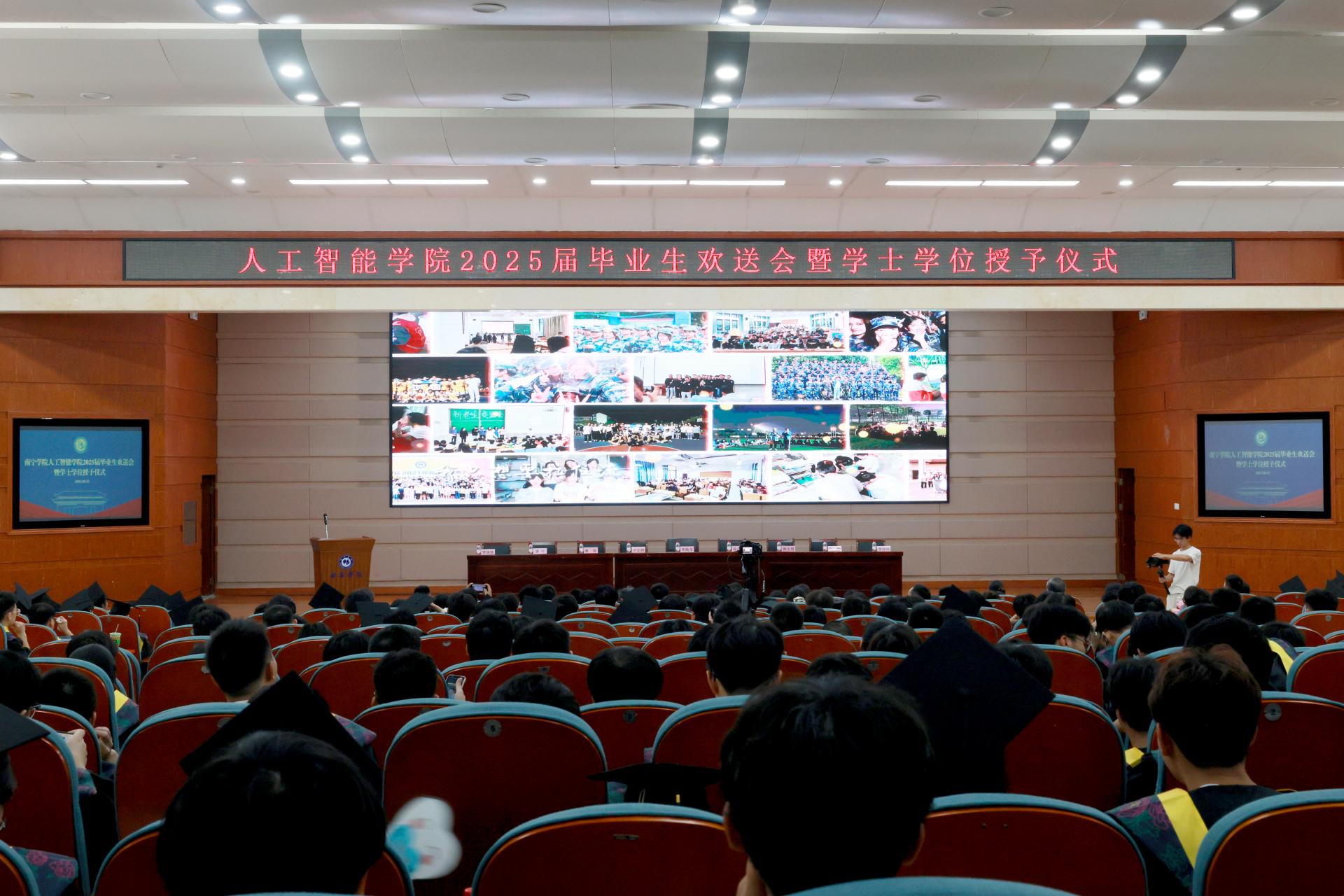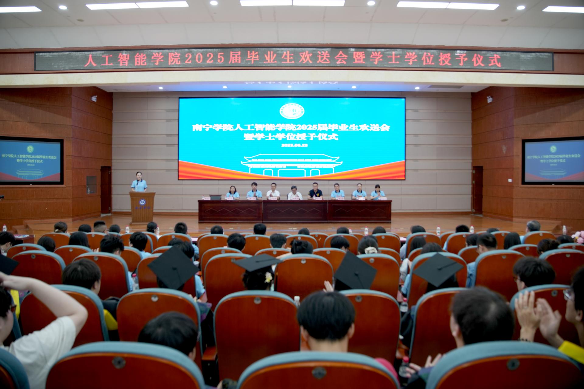 6月23日中午,人工智能学院2025届毕业生欢送会暨学士学位授予仪式在图书馆报告厅隆重举行。学院全体领导、教师和2025届全体毕业生、毕业生家长代表参加本次欢送会。欢送会由学院党委副书记李珠珠主持。