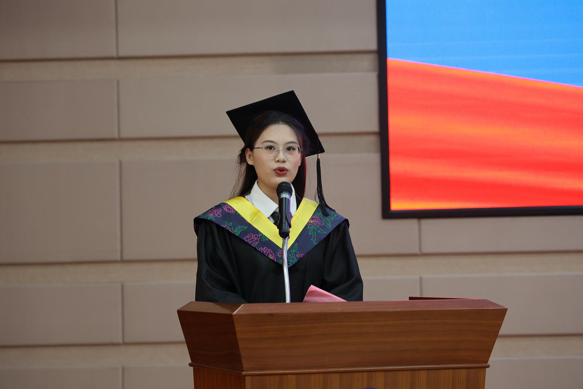 毕业生代表、2021级软件工程2班李钰卿同学上台发言