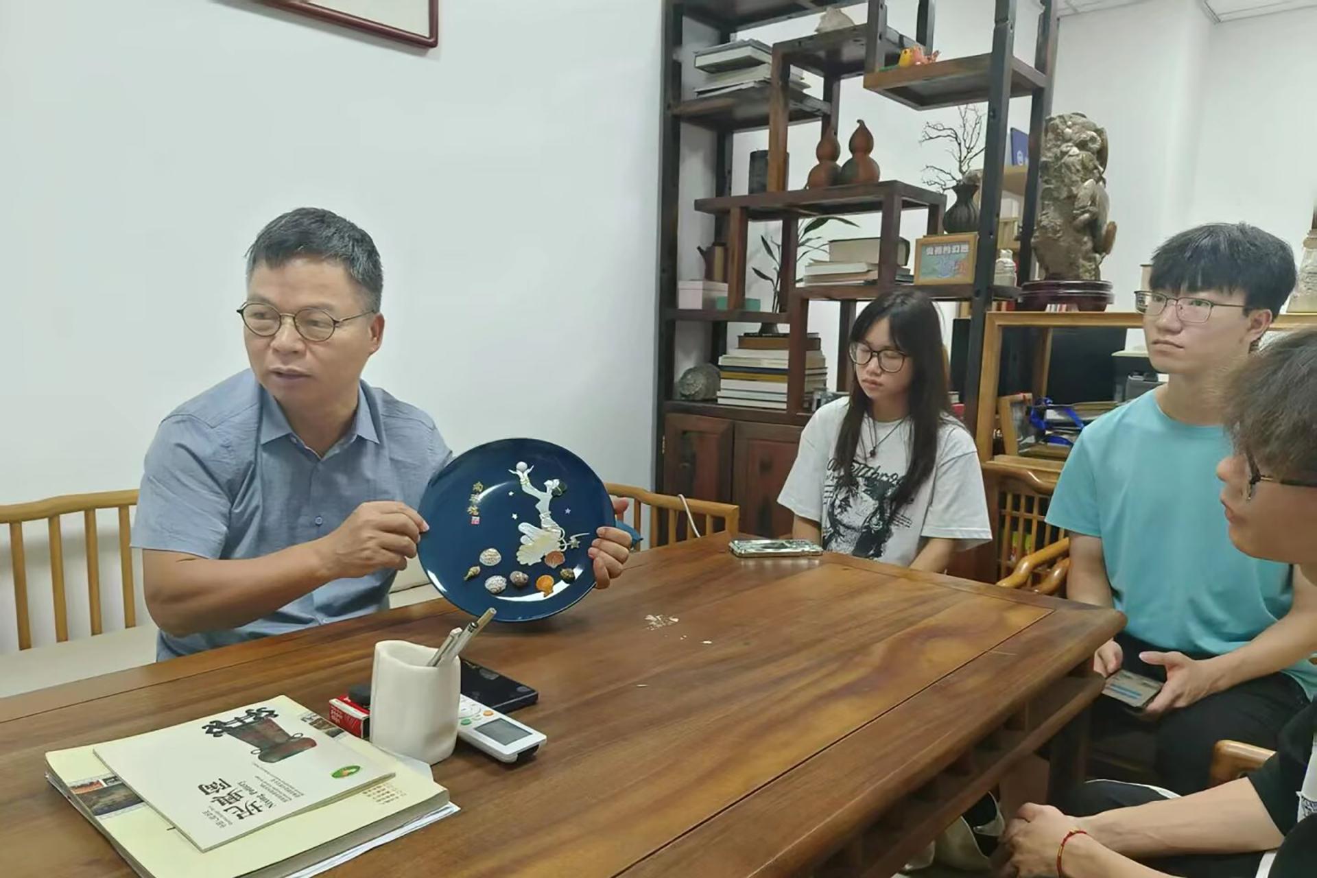 为系统性地梳理北海贝雕这一非物质文化遗产的传承脉络,并精确满足团队2025年暑期“三下乡”社会实践活动的需求,7月6日,人工智能学院“匠心守艺,青春传贝”实践团队在工艺美术大师利成世老先生的指导下,深入学校贝雕工作室进行实践前期的专项调研。此次调研活动标志着非物质文化遗产传承与创新实践的正式开启。