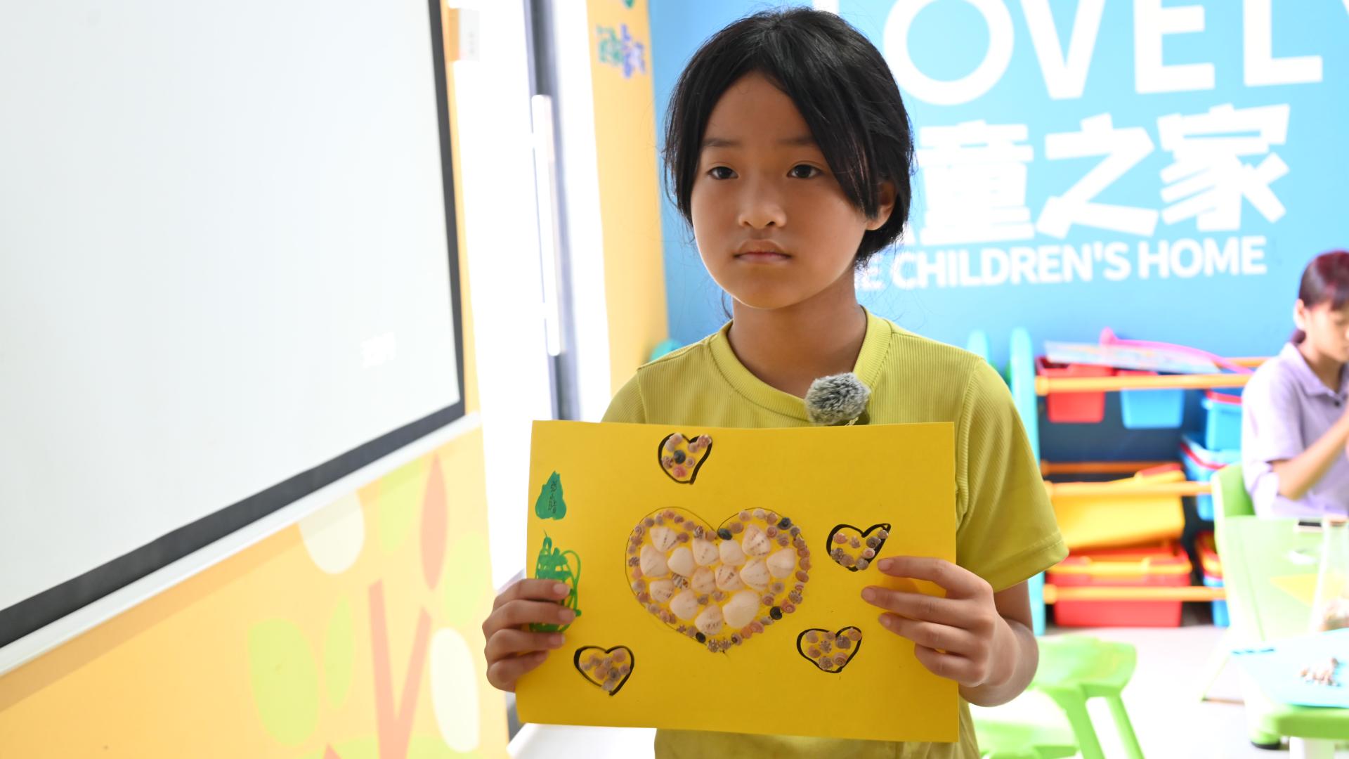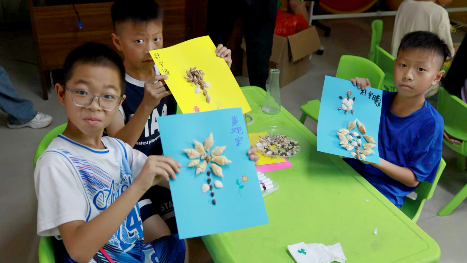 作品展示环节,小朋友们纷纷举起自己的贝雕画和漂流瓶,脸上洋溢着自豪与快乐的笑容,争先恐后地向采访者展示作品,诉说内心的激动与喜悦。活动尾声,小朋友们与实践团成员合影留念,为这场充满意义的活动画上了圆满的句号。此次活动让孩子们亲身感受贝雕艺术的独特魅力,在他们心中播下保护海洋生态环境的种子。