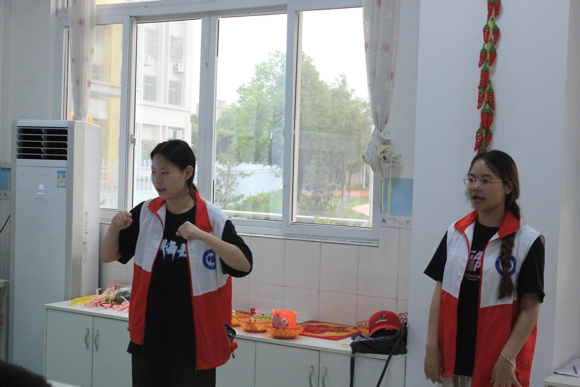 下午的活动更加精彩纷呈。实践团成员魏嘉璐同学教福利院的孩子们制作郁金香扭扭棒,从折叠到拼接,实践团成员一一耐心指导,孩子们兴致勃勃,将扭扭棒变成一朵朵绽放的“花朵”,成就感满满。其中有一个小女孩虽然动作有些笨拙,但在实践团小伙伴的鼓励下,最终成功制作出了一朵漂亮的粉色郁金香,她开心地把这朵花送给了党委副书记李珠珠。随后,韦露雨与黄逸菲同学带来了活力四射的手势舞《日不落》教学,有些孩子们虽然肢体协调欠佳,但仍认真学习动作,挥舞小手,展现出蓬勃的朝气。