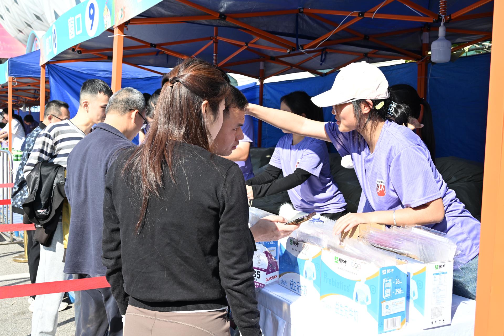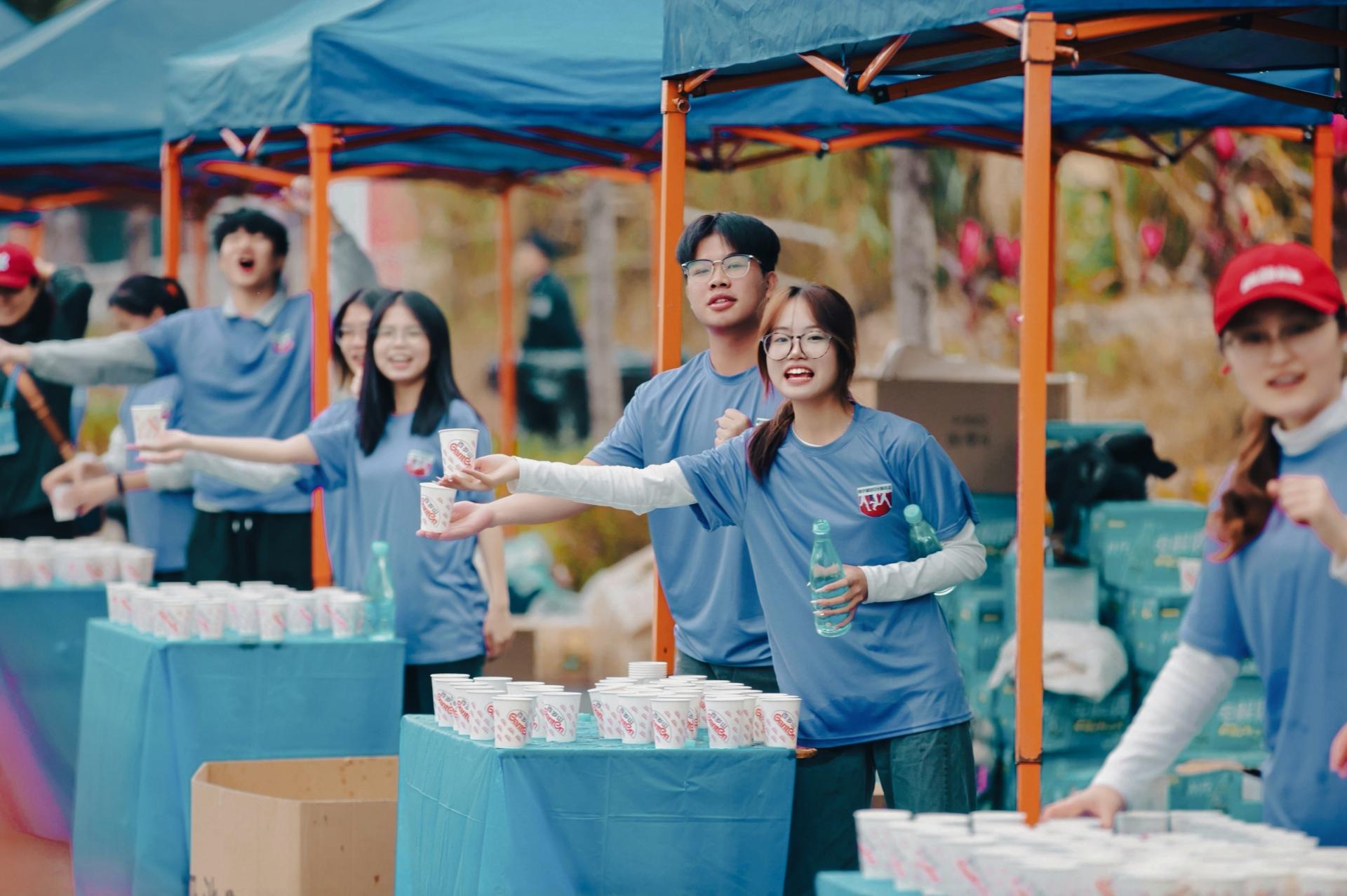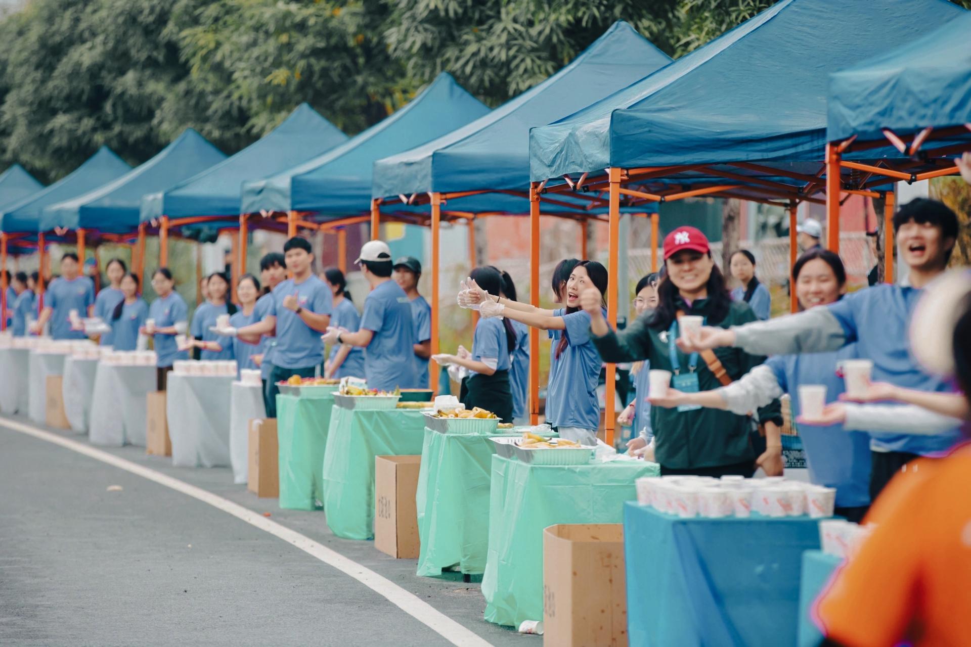 志愿者沿途为选手提供能量补给服务