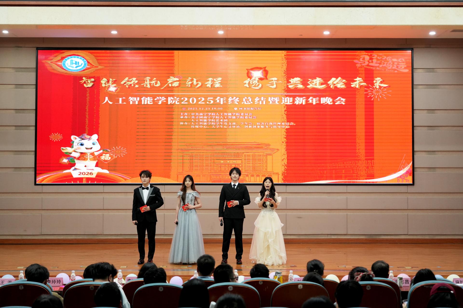 12月23日晚,智能领航启新程,携手共进绘未来——人工智能学院2025年终总结暨迎新年晚会在图书馆报告厅隆重举行。学院领导薛广明、李珠珠、卢志翔等与学院师生欢聚一堂,共赏这场融合青春活力与奋进精神的视听盛宴。