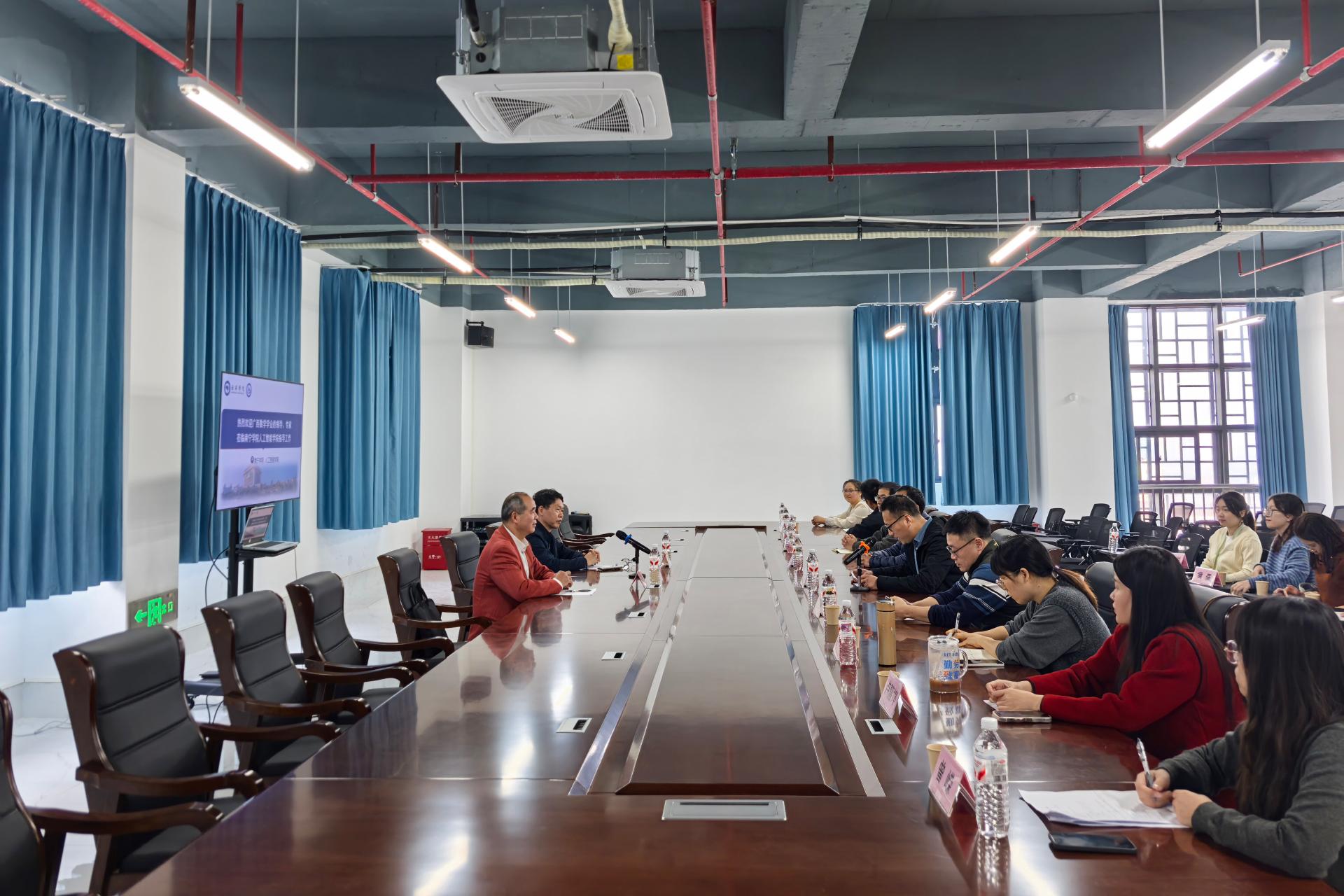12月22日下午,广西数学学会理事长唐高华、全国大学生数学建模竞赛广西赛区专家组组长吕跃进一行莅临人工智能学院,就民办院校数学建模竞赛发展态势与学科建设路径召开专题座谈交流会。本次会议由人工智能学院副院长(主持日常工作)薛广明主持,学院数学教研室全体专任教师全程参会并深入交流。