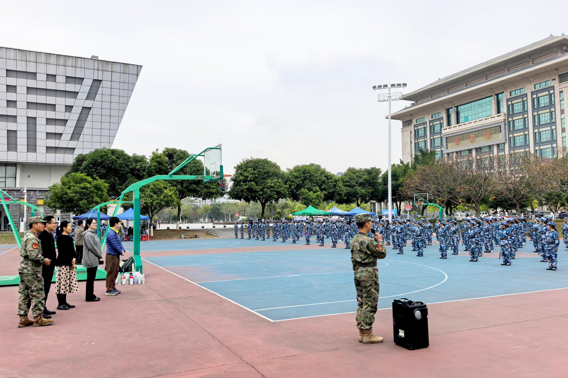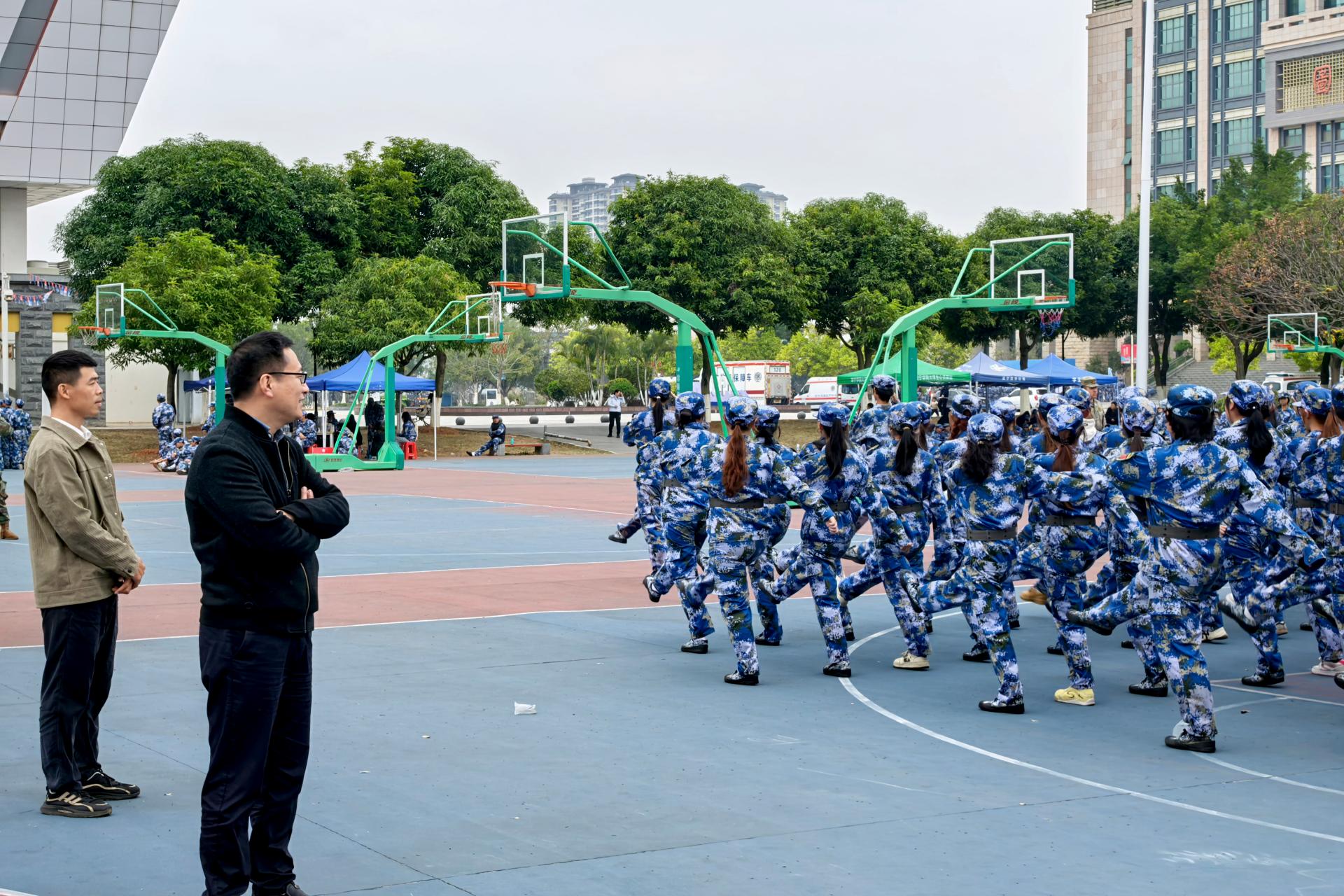 薛广明副院长(主持日常工作)为军训学生鼓舞打气