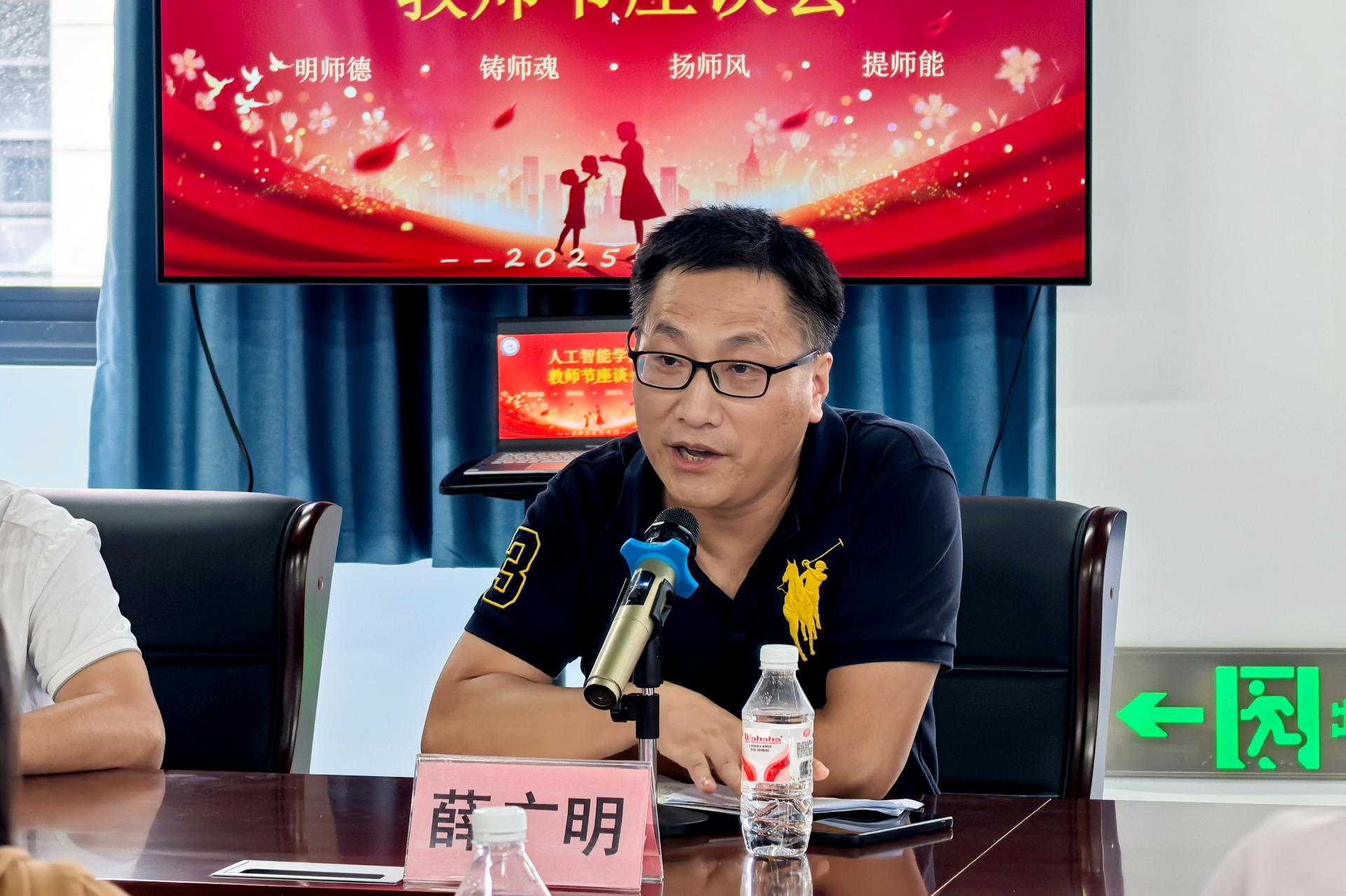 会议伊始,人工智能学院副院长(主持行政工作)薛广明首先向全体教师送上节日问候,由衷感谢大家深耕教学科研与人才培养沃土,并特别提到新教师的加入为师资队伍注入了蓬勃活力,勉励新老教师携手共进、茁壮成长。